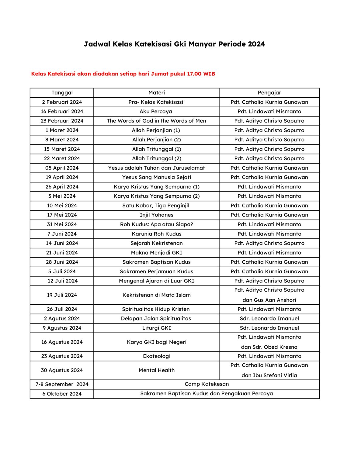 Kelas Katekisasi TerbukaGKI Manyar 2024 Bergabung secara onsite di Ruang Kelas Katekisasi Lantai 4 GKI Manyar Bergabung secara online (Zoom)